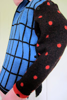 Pullover with fringes 2 BANAN + 2 PRICK pieces, 38 buttons. The fringes buttoned up on the outside of the sleeves. |