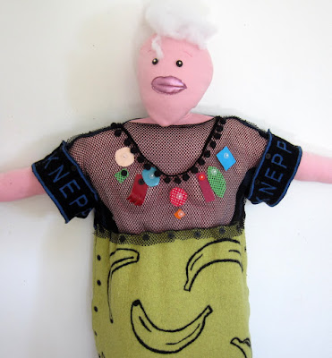 The dress is made up with 2 BANAN, 1 RUTA, a network front piece in the same shape as a RUTA piece and 4 SMÅKNEPP pieces and about 60 buttons.