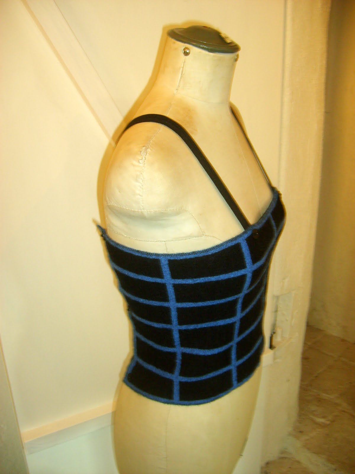Top made up with 4 PRICK pieces - 40 buttons and around the neck buttonhole elastic