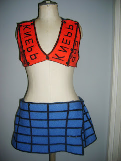 2 BANAN pieces for the skirt and small hand-crocheted squares are snapped together to a dress. Flowers in the buttons, if you want?